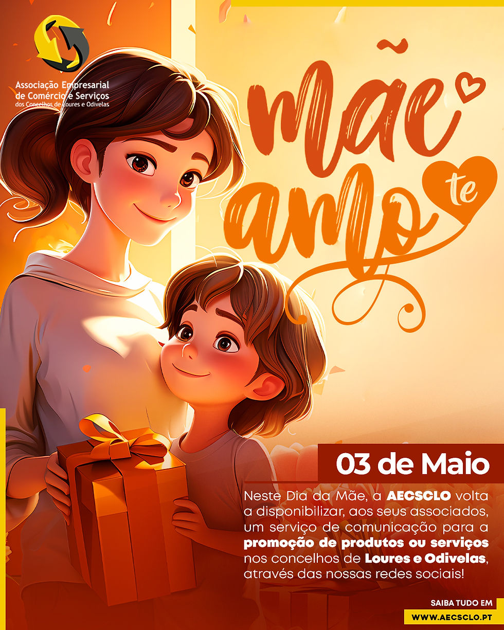 No próximo dia 3 de maio celebra-se o dia da Mãe e nada melhor que podermos apoiar e promover o comércio local. Tal como aconteceu noutros dias festivos, a AECSCLO irá disponibilizar a todos os seus associados um serviço de comunicação para a promoção de produtos e serviços nos concelhos de Loures e de Odivelas, através das nossas redes sociais (Facebook e Instagram).